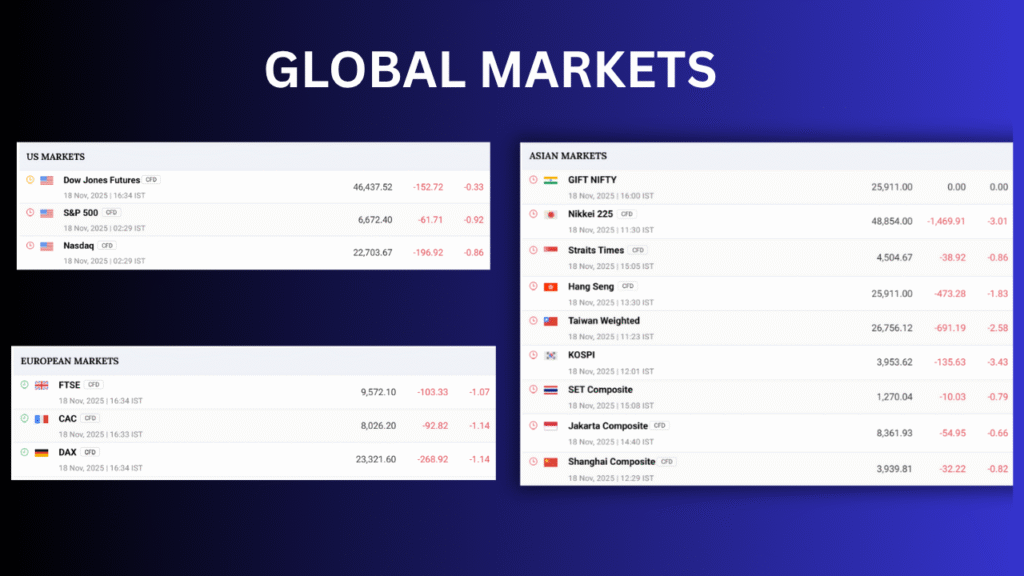 One of the biggest triggers behind today’s fall was the weakness in global markets. Asian indices opened lower, while the global sentiment remained cautious due to concerns around high inflation, geopolitical tensions, and uncertainty in U.S. monetary policy.
